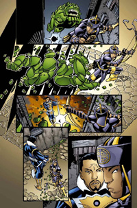 Every page starts with a script! After all, the comic book artist is first and foremost a storyteller, so it is only proper to begin with the story! We've all read a novel. When we become engrossed in the story, we lose track of the mechanical process of reading (eyes moving left-to-right, top-to-bottom) and images begin to take shape in our minds. Descriptive and clear text inspires sharp and clear pictures in our minds. In simple terms, that is the job of the comic book artist: to read the script, allow those images to form in our mind's eye, then scramble to get them down onto paper for further analysis and refinement. Presented for your review is the script for this story page written by the excellent writer Tony Bedard. Read it over a few times, to make sure you understand the action occurring here. Just a few notes on my markings: