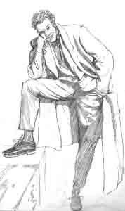 So that's all there is to Life Studies! I have many more such illustrations in my sketch books -- and you should, too! This is a great way to learn the human body -- from REALITY! Now that you are getting the handle on drawing the figure in more relaxed poses, why not go onto the next section and try your hand at some action shots! The art accompanying this tutorial was completed by me when I was a 22 years old aspiring comic book artist! |
