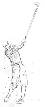 Golfer in action! Yes, you heard me! You can find athletes in many sports -- you don't have to limit yourself to contact sports! Can you recognize this athlete? Figure balance and structure is CRITICAL in a shot like this. Notice the attempt to capture the smoothness and power in the swing through a smooth body-line and divot debris!