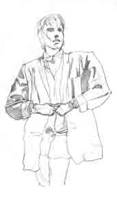 This is a figure of a man standing. Notice the bulk of his jacket, and the roominess in the slacks. If the underlying figure isn't worked out, it is VERY easy to lose control over the body under such roomy clothing! Figure balance and structure, draped clothing, hair, and light and shade are all represented here.